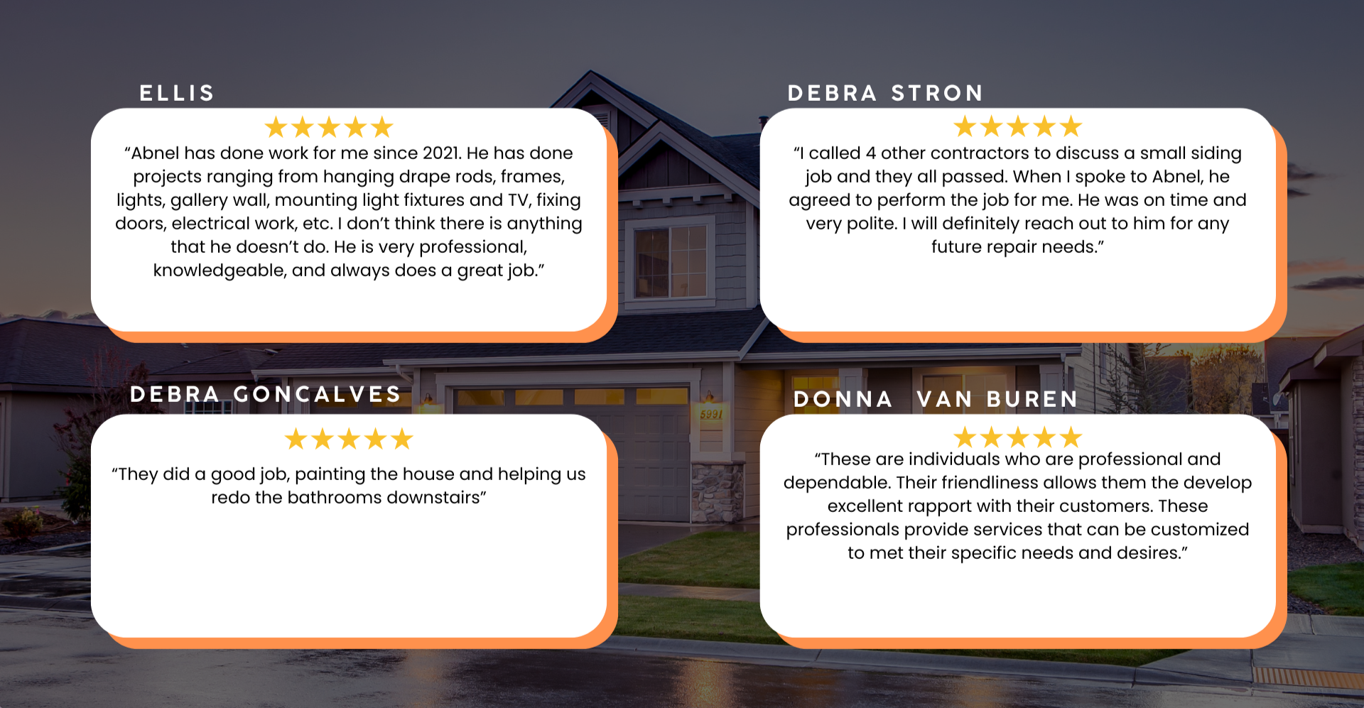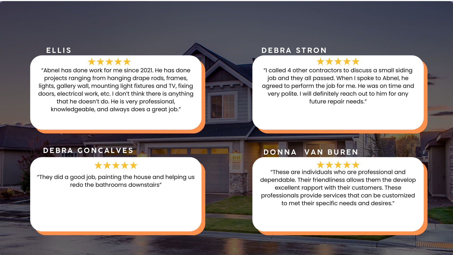 Repairs, drywall, doors, fixtures, TV mounting, and more.